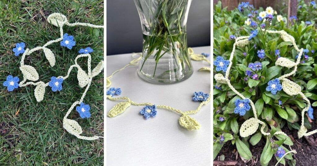 Home » Blog » Crochet Patterns » Home Decor Crochet Patterns » Crochet Flower Garland Pattern with Forget-Me-Nots