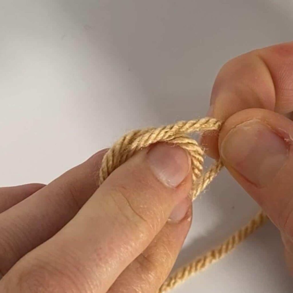 4. Grab hold of the yarn you pushed through and pull to tighten