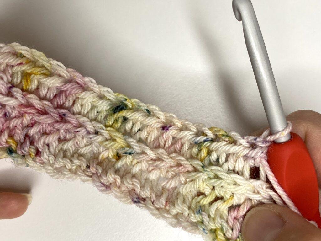 9. You have now created your first half double crochet in the third loop. Continue repeating these steps to crochet across your row!