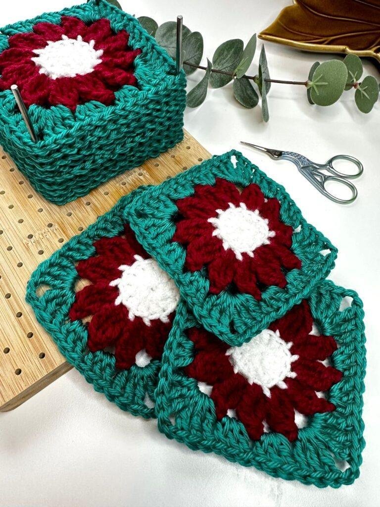 Made using cotton yarn and just 4 floral granny squares, this project is easy and fun!